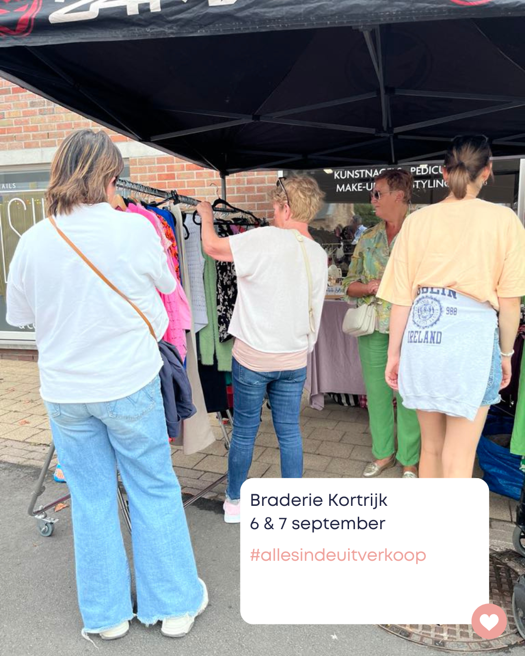 ♥ Braderie Kortrijk 6 en 7 Kortrijk We stellen onze rekken in Kortrijk! Op de braderie ... lekker gezellig snuisteren tussen vele standjes. Afkomen is de boodschap!